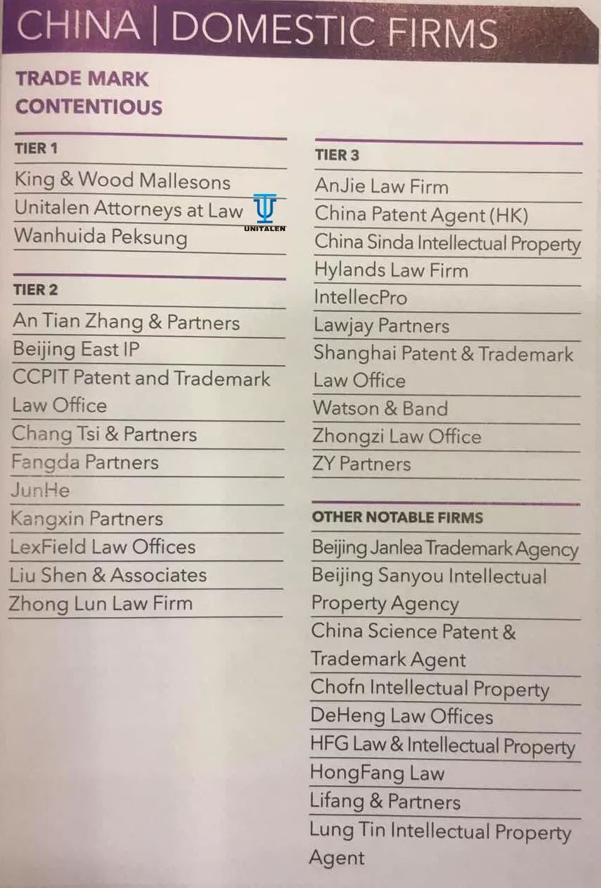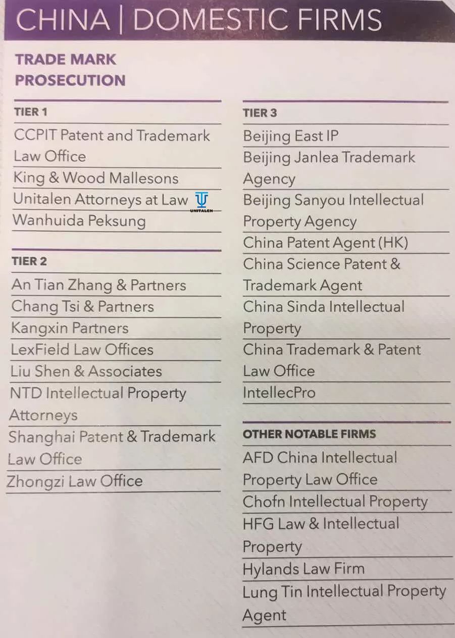 先ごろ、國際的に権威のある知的財産メディアである「知的財産管理」(Managing Intellectual Property,MIP)が「2019 IP Stars商標業務ランキング」を発表し、集佳が商標登録出願および商標訴訟分野において中國エリアランキングで最上位グループ(Tier 1)に再度選出された。