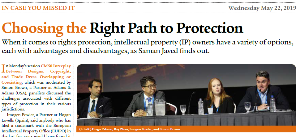 5月20日、集佳のシニアパートナー弁護(hù)士である趙雷氏はINTAの招待を受け、「意匠、著作権、トレードドレスの相互作用と相互影響」をテーマに、INTA第141回年次総會(huì)のメイン會(huì)場(chǎng)にて基調(diào)講演を行った。趙氏は南アフリカ、アメリカ、アルゼンチン、スペインの知的財(cái)産の専門(mén)家と共にパネリストとして、世界の各主要地域の意匠、著作権、トレードドレスなどのさまざまな知的財(cái)産に関する保護(hù)戦略と実務(wù)の問(wèn)題について意見(jiàn)交換、議論を行った。また、趙氏は、インドと日本の保護(hù)の仕組み、そしてそれが中國(guó)の狀況と極めて似ていることを紹介した。また、トレードドレスの保護(hù)について、中國(guó)、インド、日本のいずれの國(guó)でも、知的財(cái)産権の権利者は立體商標(biāo)、著作権、意匠など複數(shù)の保護(hù)手段があり、各権利の長(zhǎng)所と短所を踏まえて、最も優(yōu)れた保護(hù)効果を?qū)g現(xiàn)すべきである旨を指摘した。