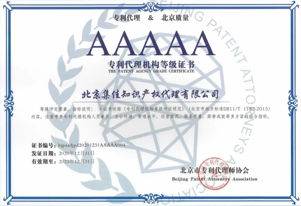 2021年6月4日、北京市知識産権局、北京市専利代理師協會が北京市で2020年専利代理組織等級評定表彰式」を開催し、北京集佳知識産権代理有限公司は再び最高等級である北京市「AAAAA専利代理組織」の評価を獲得した。