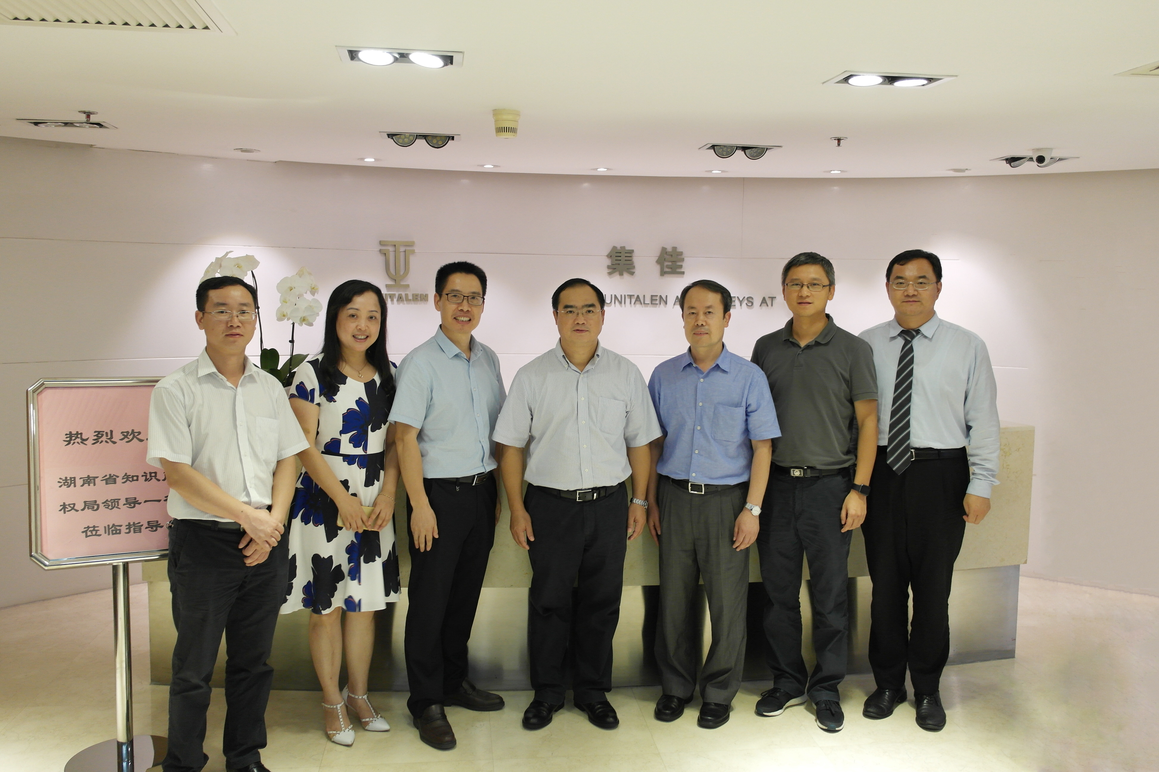 7月19日,湖南省知識產權局肖祥清局長一行到集佳考察調研,集佳知識產權代理有限公司于澤輝所長、集佳律師事務所李永波主任、湖南集佳田達良主任陪同座談。