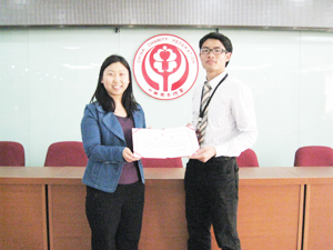 員工代表向中華慈善總會轉(zhuǎn)交集佳捐款 員工代表接受捐款證書