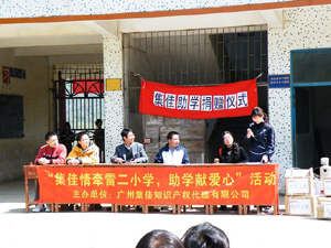 信守著感恩博愛、熱情助人、承擔社會責任的信念,廣州集佳知識產權代理有限公司組織員工和東莞辦事處在2009年3月的一個星期六組織了扶助清新縣石潭鎮雷二小學的獻愛心活動。