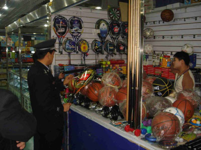 工商執(zhí)法人員進行檢查 現(xiàn)場查獲的侵權(quán)產(chǎn)品