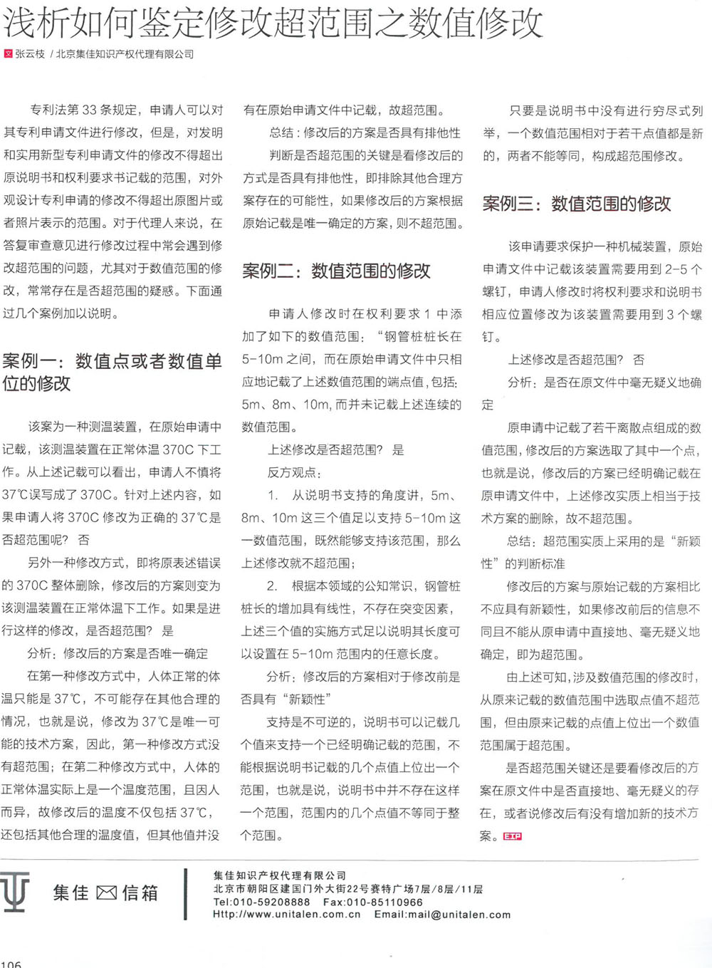 集佳代理人撰文《淺析如何鑒定修改超范圍之數值修改》在《電子知識產權》發(fā)表