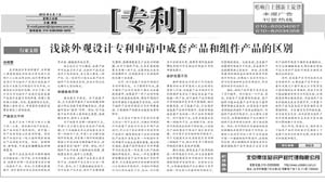 《中國知識產權報》:淺談外觀設計專利申請中成套產品和組件產品的區別