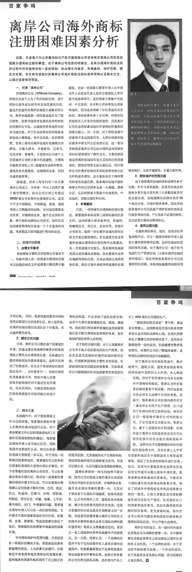 《再生時代》:離岸公司海外商標注冊困難因素分析
