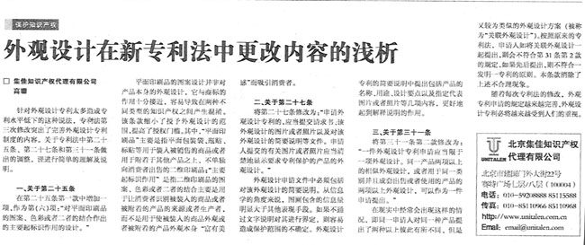 《國際商報(bào)》:外觀設(shè)計(jì)在新專利法中更改內(nèi)容的淺析
