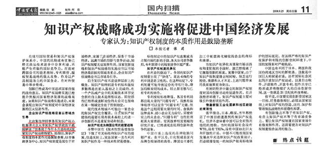 《中國貿易報》:知識產權戰略成功實施將促進中國經濟發展
