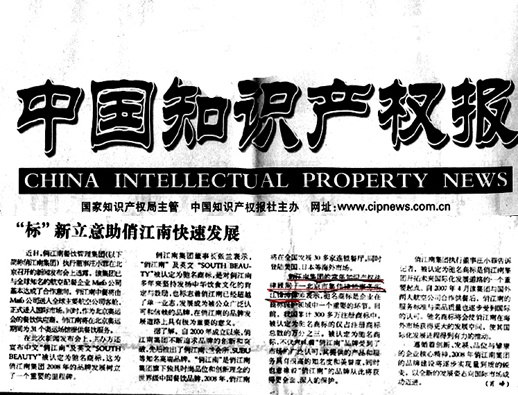 《中國知識產權報》:"標"新立意助俏江南快速發展