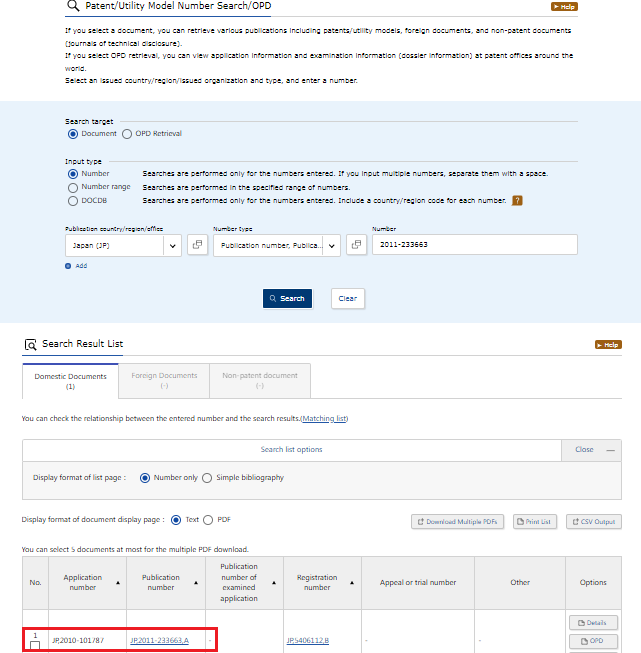 例如,在已知申請(qǐng)公開號(hào)的情況下,通常可以通過Patent/Utility Model Number Search/OPD或Simple Search等方式進(jìn)行檢索。