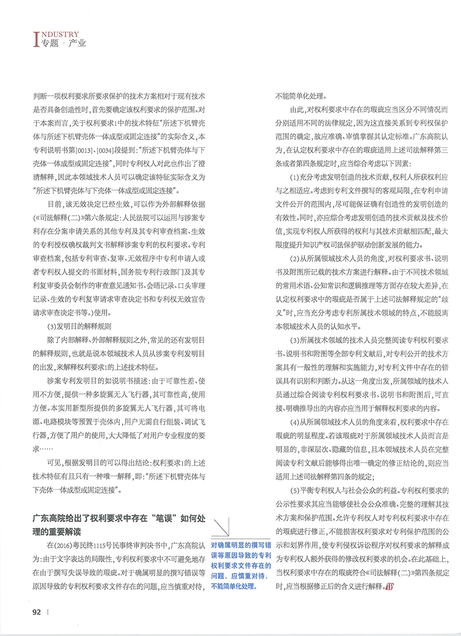 集佳文章《權利要求存在“筆誤”等瑕疵的修正原則》在《中國知識產權》發表