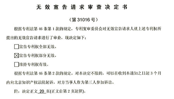 于是,最終作出了“宣告專利權部分無效”的審查決定。