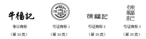 商評委經審理認為:爭議商標由文字“牛福記”構成,與引證商標中顯著識別部分的文字“徐福記”僅一字之差,在文字設計風格和視覺效果等方面相近,爭議商標與引證商標已構成近似商標。爭議商標指定的糖、餅干等商品與引證商標核定使用的糖果、糕點等商品在功能、用途、銷售渠道等方面存在相同或相近之處。申請人提交在案證據顯示“徐福記及圖”商標經使用在第30類糖果、糕點等商品上具有較高的知名度,被申請人在應當知曉申請人商標知名度的情況下仍然注冊爭議商標的行為難謂正當。因此,爭議商標與引證商標構成使用在相同或類似商品上的近似商標。爭議商標予以無效宣告。