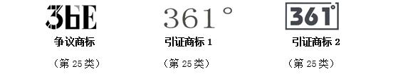 商評委裁定:引證商標“361°”具有較強獨創性,且據申請人提交我委的證據可知, “361°”商標在爭議商標注冊申請日前在服裝、運動鞋商品上已具有較高的知名度,爭議商標“36E”與“361°”的文字構成、呼叫相近,含義無明顯區別,構成近似商標。同時,爭議商標指定使用的服裝等商品與引證商標核定使用的商品在功能用途、銷售渠道、消費對象等方面相同或相近,屬于同一種或類似商品。爭議商標與引證商標共存易導致公眾對商品的來源產生混淆、誤認,從而裁定爭議商標予以無效宣告。