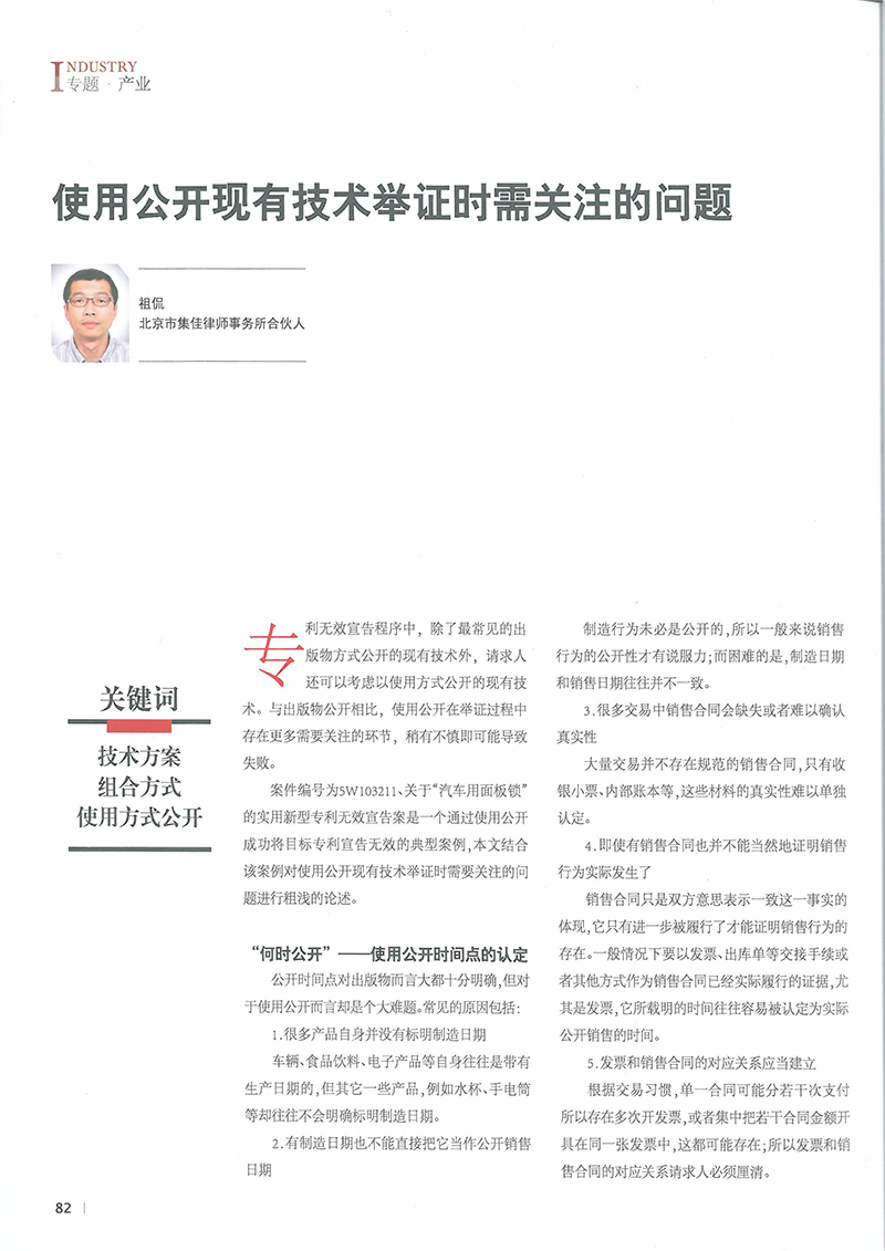 集佳文章《使用公開現(xiàn)有技術(shù)舉證時(shí)需關(guān)注的問題》在《中國知識產(chǎn)權(quán)》發(fā)表