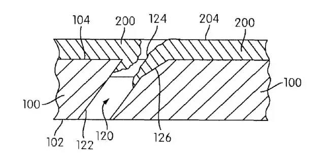 100-襯底;102-第二壁表面;104-第一壁表面;120-貫通孔;122-計量孔;124-冷卻孔出口;126-翼狀槽;200-熱障涂層;204-表面