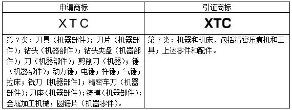 “XTC”商標第01;06;07;09;11類馬德里指定新加坡申請被引證英國公司C&T MATRIX LIMITED名下的第7類在先商標下發駁回,部分駁回了申請商標在第7類商品上的申請注冊。申請商標和引證商標信息具體如下: