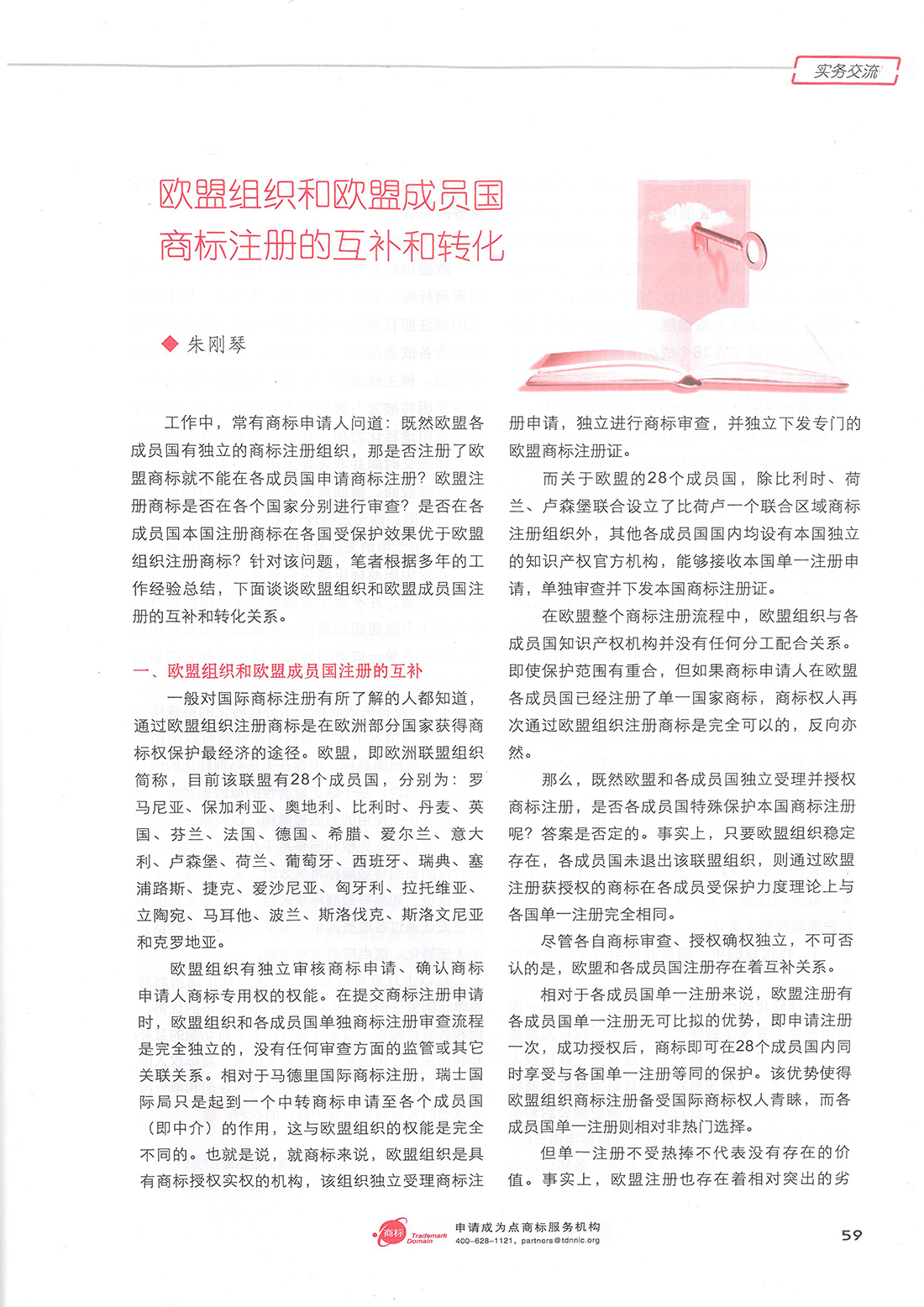集佳文章《歐盟組織和歐盟成員國商標注冊的互補和轉化》在《中華商標》發表