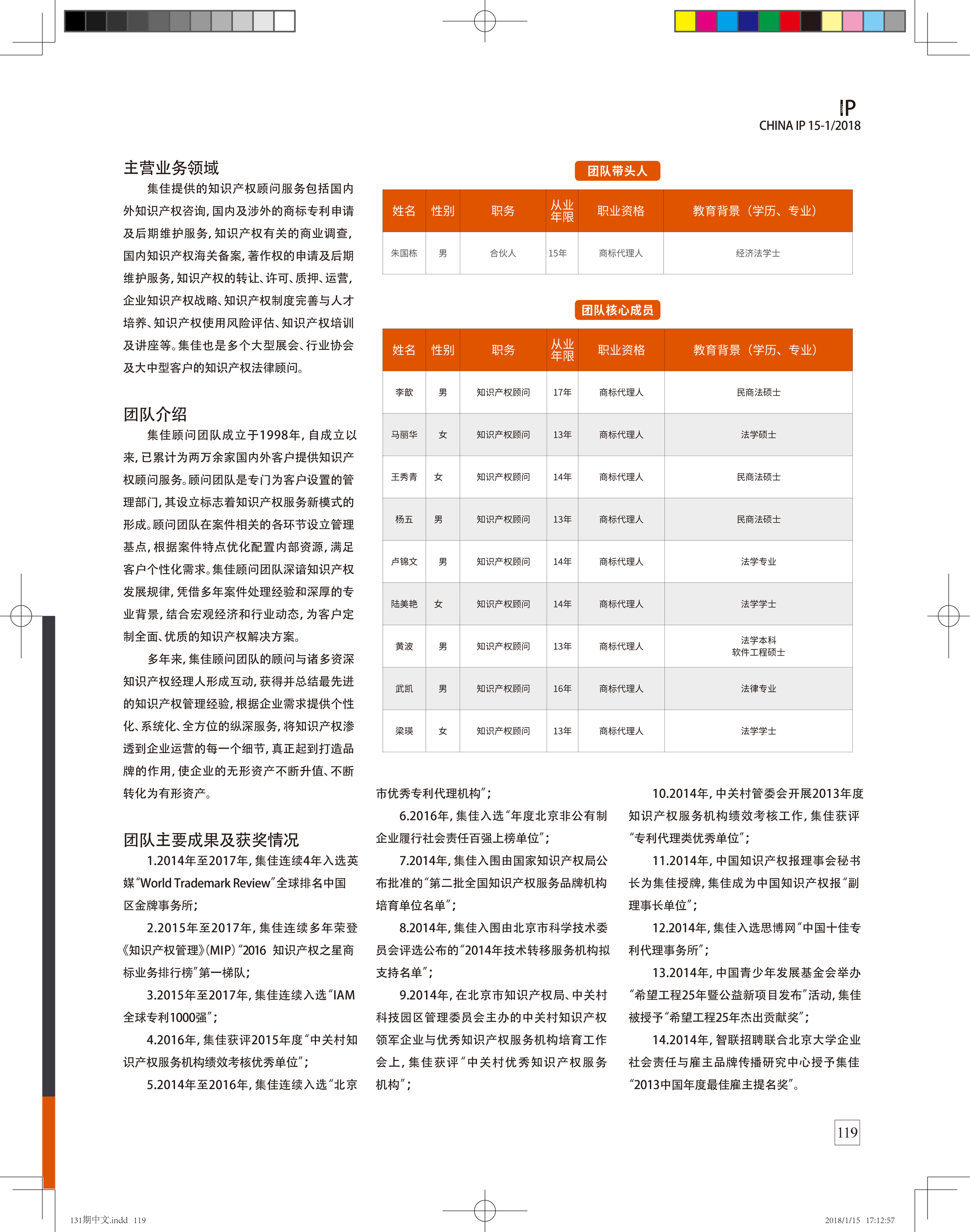 集佳顧問團隊榮獲“2017中國杰出知識產權服務團隊”