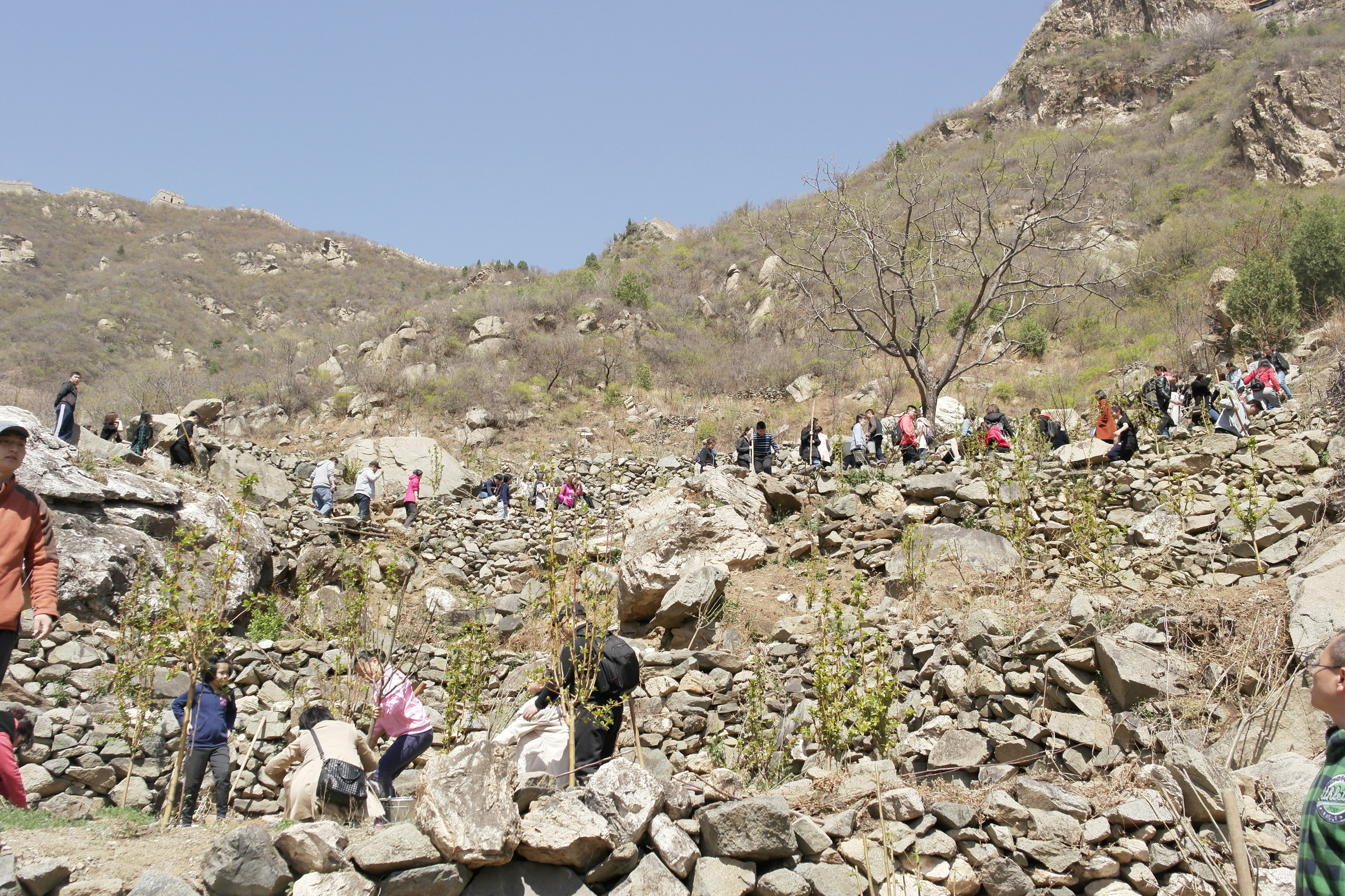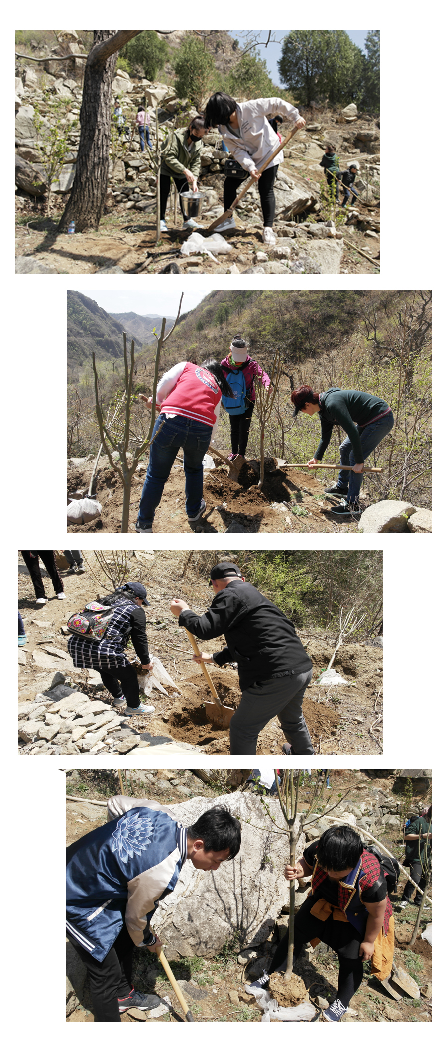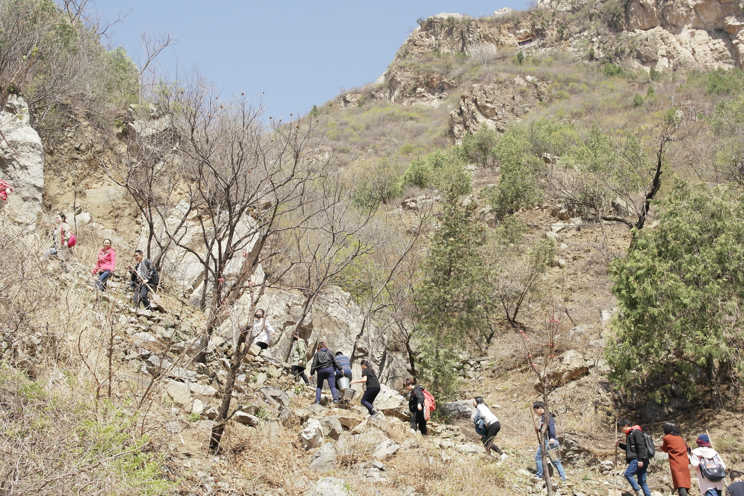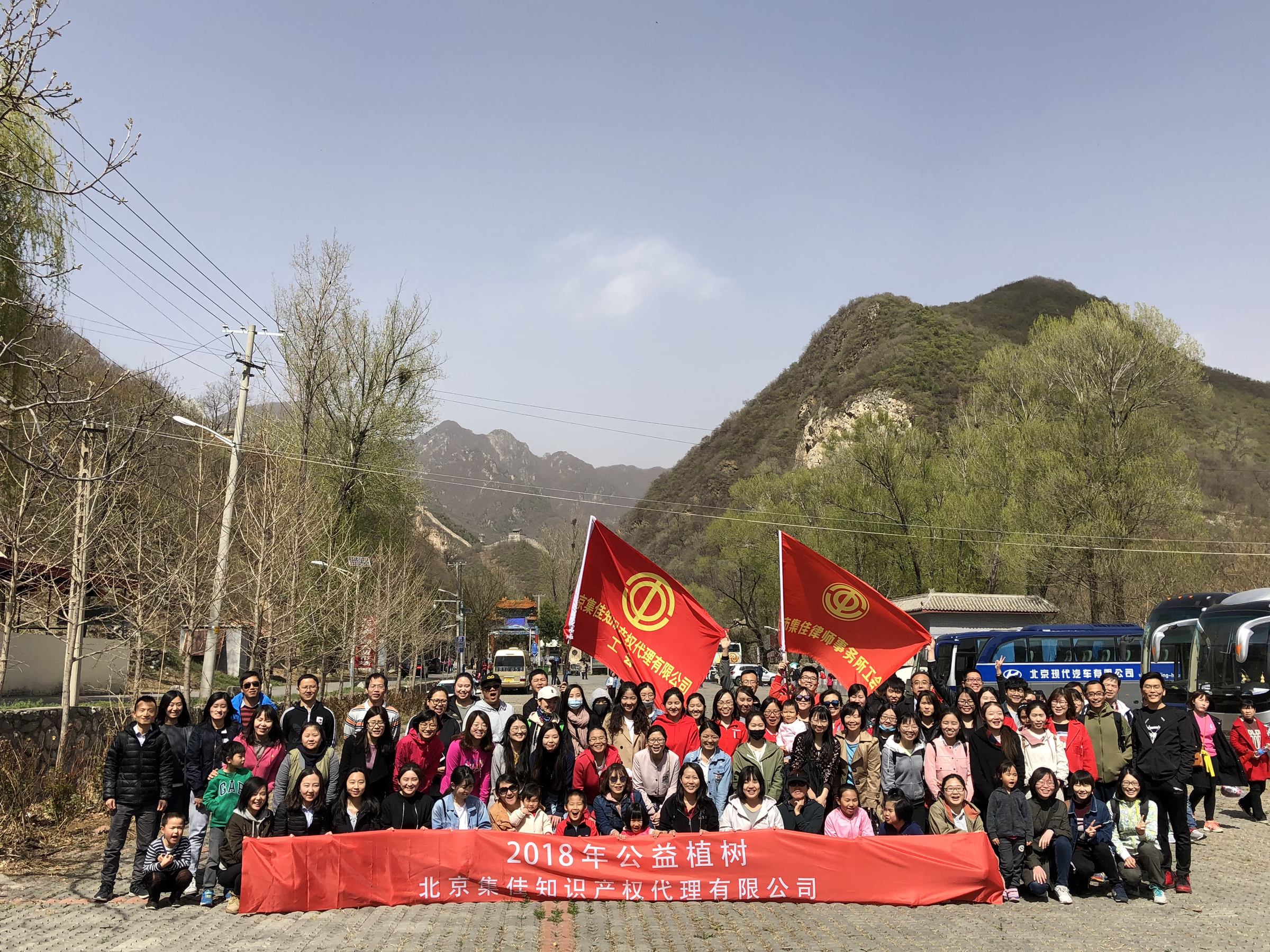 今年的公益植樹依舊選址懷柔區慕田峪長城西,聽說去年種的小樹此時花開正盛,大家上山的腳步也更加輕盈,呼吸著郊外的新鮮空氣,一行人心情也和陽光一樣明媚。