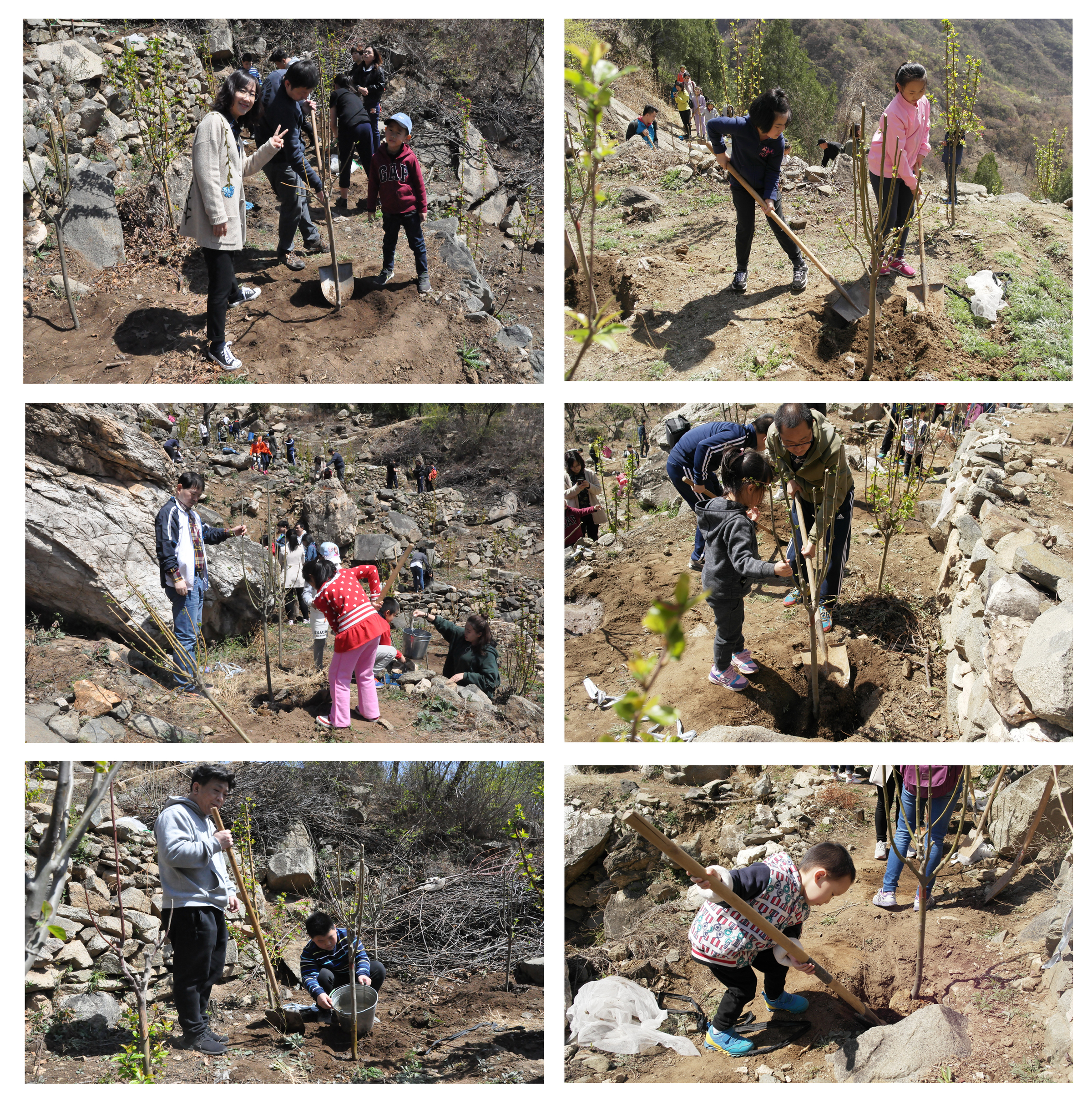 抵達指定地點后,大家認真聽取了植樹過程中的注意事項,隨后便揮起鐵鍬、鎬頭熱火朝天地開始了植樹勞動:挖坑、扶苗、填土、踩實、澆水……一顆顆樹苗隨之拔地而起,山坡上,除了集佳人掛滿汗珠的笑臉,又添了深深淺淺的一片新綠。