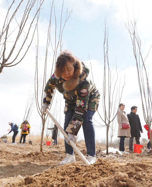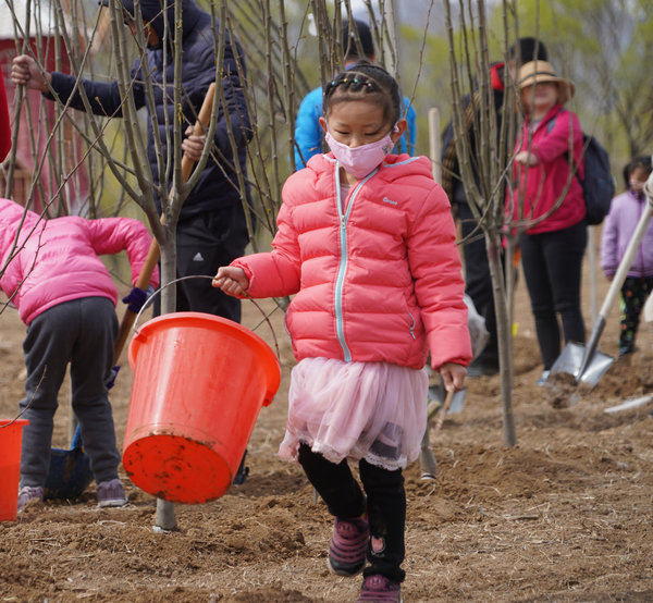 到達植樹基地,大家熱情高漲,立刻投入到植樹勞動中。有人挖坑,有人扶苗,有人培土,有人澆水,各個環節有條不紊,不管是白發蒼蒼的爺爺奶奶,還是稚氣十足的小朋友,每個人都忙的不亦樂乎,處處是一派熱火朝天的景象。盡管褲腳上沾滿了沙土,額頭上冒出了汗珠,但大家絲毫不在意,依然干勁十足,一時間,在歡聲笑語中,植樹基地呈現出初春的生機與歡樂。