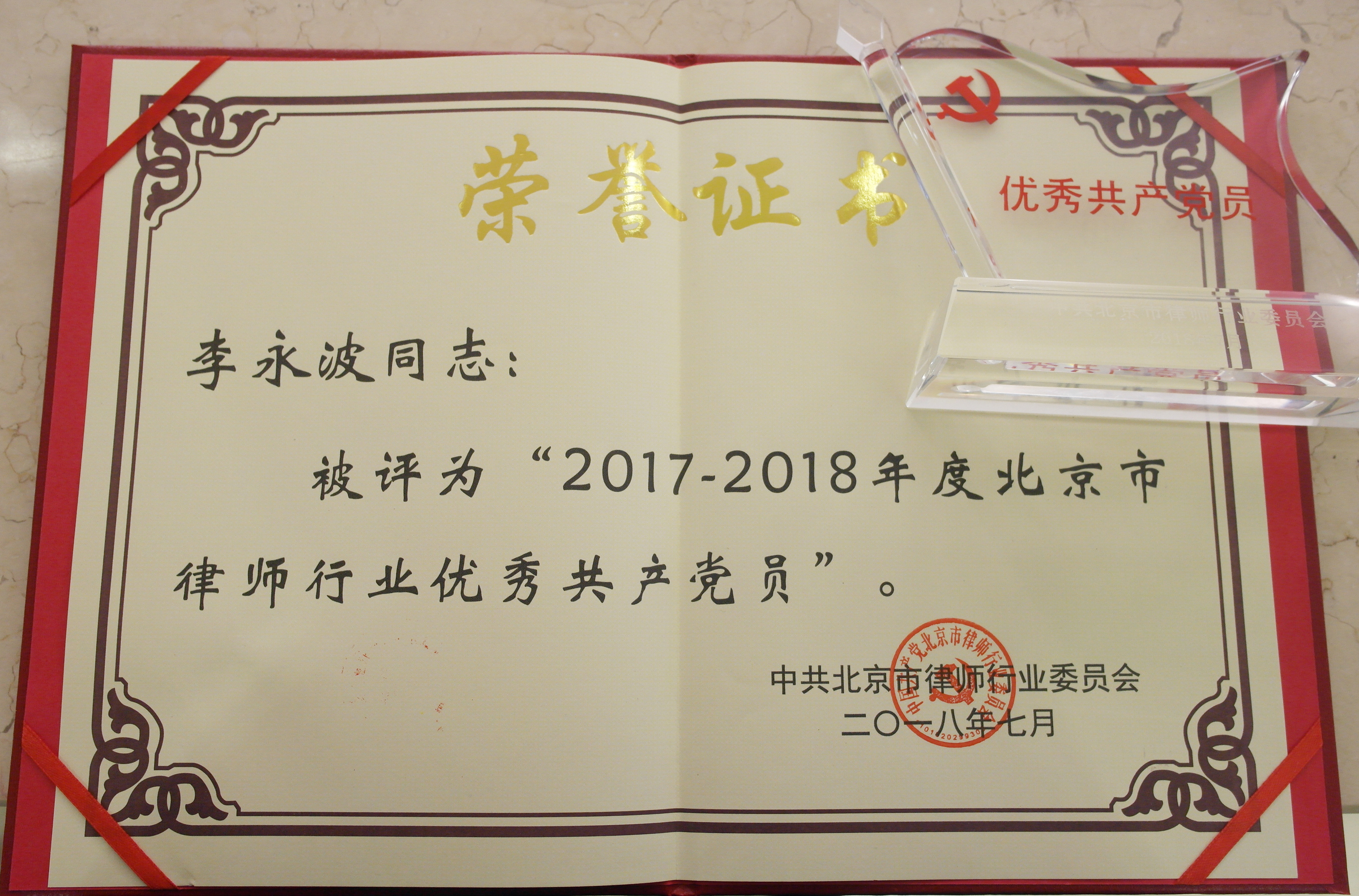 為進一步加強基層黨組織建設,切實發揮黨支部的戰斗堡壘和黨員的先鋒模范作用,北京市及各區律師行業黨委在律師隊伍中開展了先進黨組織、優秀共產黨員、優秀黨務工作者和黨建之友的評選活動。經朝陽區協會黨委的綜合審核及評定,集佳律師事務所黨支部被授予“2018年度先進黨組織”殊榮,李永波律師、張海芳律師、王荷舒律師被授予朝陽區“優秀共產黨員”榮譽稱號,此外,李永波律師還被評為“2017-2018年度北京市律師行業優秀共產黨員”。