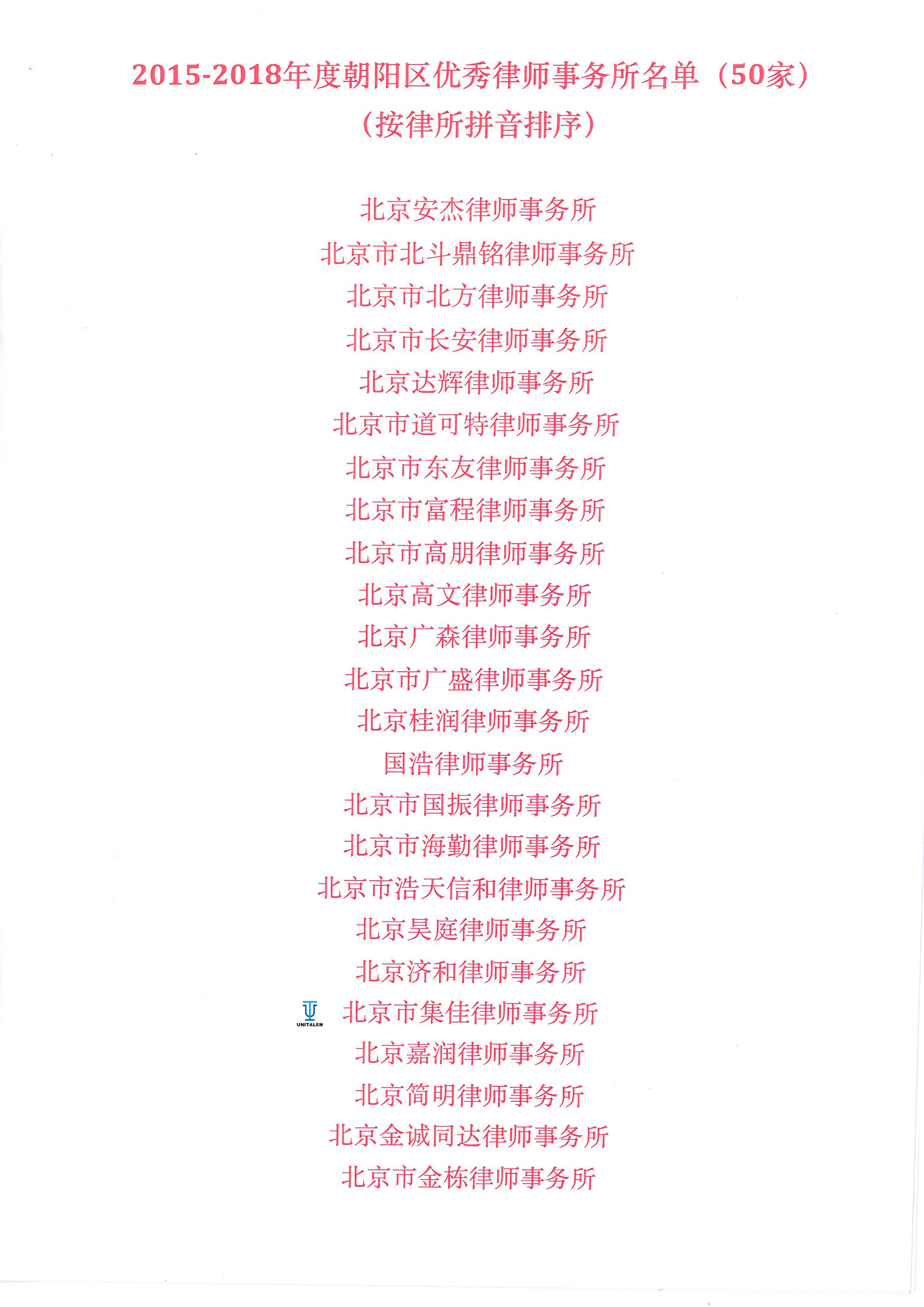 日前,朝陽(yáng)區(qū)律師協(xié)會(huì)公布了2015-2018年度朝陽(yáng)區(qū)優(yōu)秀律師事務(wù)所和優(yōu)秀律師的名單,集佳律所和集佳律師均位列其中。
