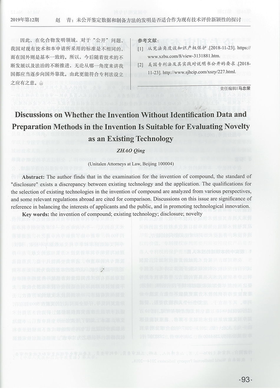 集佳文章《未公開鑒定數(shù)據(jù)和制備方法的發(fā)明是否適合作為現(xiàn)有技術(shù)評價新穎性的探討》在《中國發(fā)明與專利》 發(fā)表
