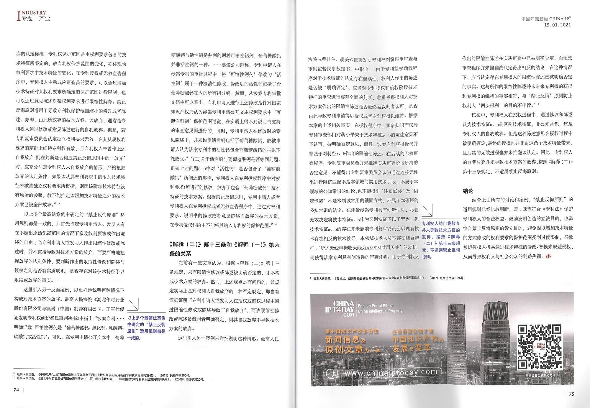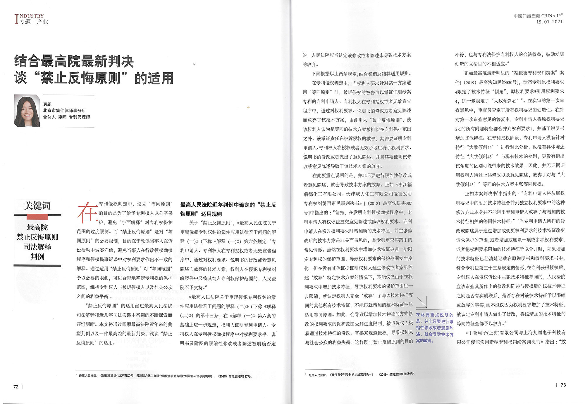 集佳文章《結合最高院最新判決談“禁止反悔原則”的適用》在《中國知識產權》發表