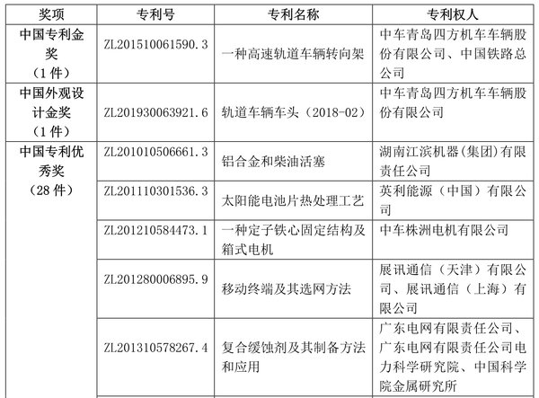6月25日,國家知識產(chǎn)權(quán)局發(fā)布了第二十二屆中國專利獎授獎決定,為30項(xiàng)發(fā)明、實(shí)用新型專利授予中國專利金獎,10項(xiàng)外觀設(shè)計(jì)專利授予中國外觀設(shè)計(jì)金獎,60項(xiàng)發(fā)明、實(shí)用新型專利中國專利銀獎,15項(xiàng)外觀設(shè)計(jì)專利中國外觀設(shè)計(jì)銀獎,825項(xiàng)發(fā)明、實(shí)用新型專利中國專利優(yōu)秀獎,56項(xiàng)外觀設(shè)計(jì)專利中國外觀設(shè)計(jì)優(yōu)秀獎。