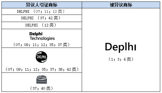 一名土耳其個人申請了“DEPLHI”第1;3;4類商標,指定使用在第1類化學(xué)品、第3類漂白、清潔劑和第4類工業(yè)用油、粘合劑等商品上。DELPHI TECHNOLOGIES IP LIMITED公司對該商標提起異議,異議人并無第1;3;4類在先商標,而是基于其他類別上在先注冊的“DELPHI”商標,援引土耳其《工業(yè)產(chǎn)權(quán)法》第6條第1款“混淆誤認”和第6條第9款“惡意”條款進行異議。雙方商標情況如下: