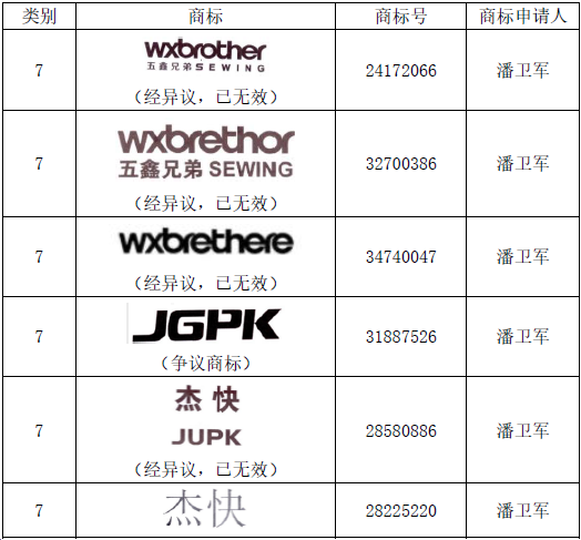 被申請人摹仿“杰克JACK”系列商標,摹仿“兄弟brother”商標,多次被提出異議、無效宣告,并且多件商標已被不予注冊及無效宣告,被申請人的惡意是非常明顯的。尤其是第28580886號“杰快JUPK”商標經過申請人提出異議,已經被認定與申請人“JACK”系列商標構成近似商標,并依法不予核準注冊。