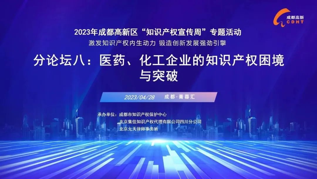 4月28日,由成都高新技術產業開發區管理委員會主辦,成都市知識產權保護中心、北京集佳知識產權代理有限公司四川分公司、北京允天律師事務所承辦的分論壇八——“醫藥、化工企業的知識產權困境與突破”專場活動如期在菁蓉匯舉行。成都市知識產權保護中心預審部部長溫萌,北京集佳知識產權代理有限公司合伙人、醫學博士、專利代理師、訴訟代理人彭鯤鵬等出席活動,70余名企業代表、10余家代理機構及律師事務所參加了本次活動。
