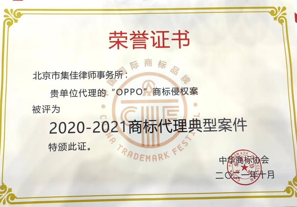 商標(biāo)節(jié)佳訊|集佳代理的王者榮耀案與OPPO案雙雙入選“2020-2021商標(biāo)代理典型案件”