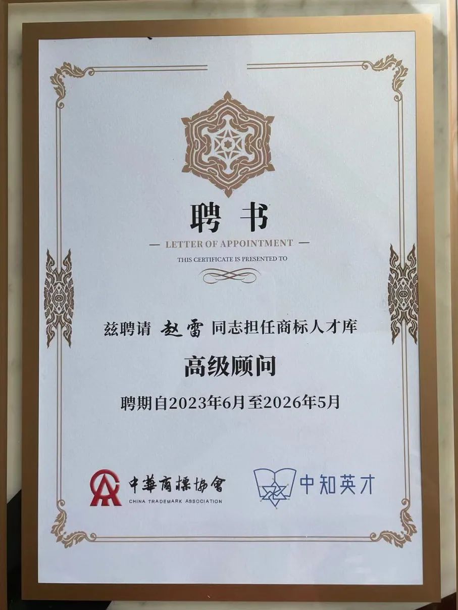 論壇上,中華商標協會人才與教育專業委員會為具有突出貢獻的單位和個人舉行了授牌儀式,北京集佳知識產權代理有限公司被授予“副主任單位”,北京市集佳律師事務所被授予“委員單位”,集佳于澤輝所長獲聘為商標人才庫“特級顧問”,趙雷律師獲聘為商標人才庫“高級顧問”。