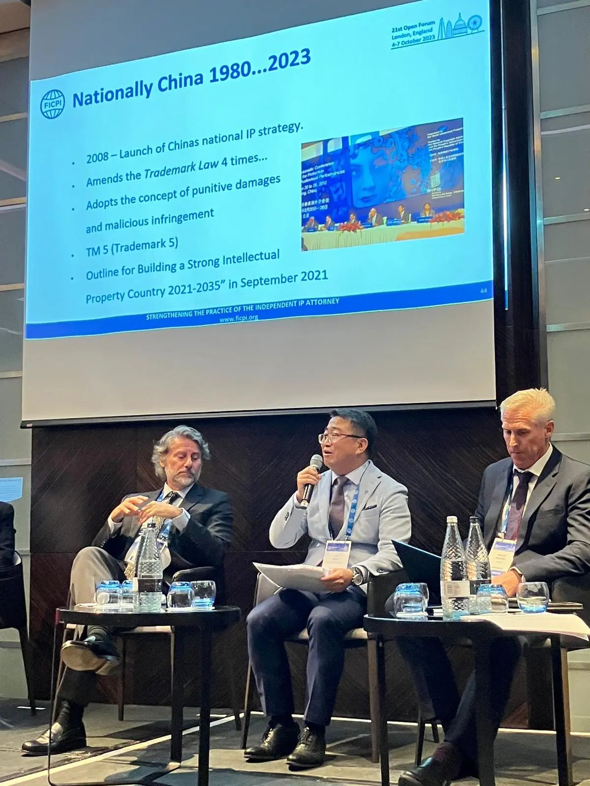 The FICPI 21st Open Forum was held on October 4-7, 2023 in London, UK. Attorney Zhao Lei, Unitalen partner, was invited to attend the forum and delivered a speech as a panelist in the expert discussion session on the agenda of "Development of Multilateral Intellectual Property Treaties" on October 5.