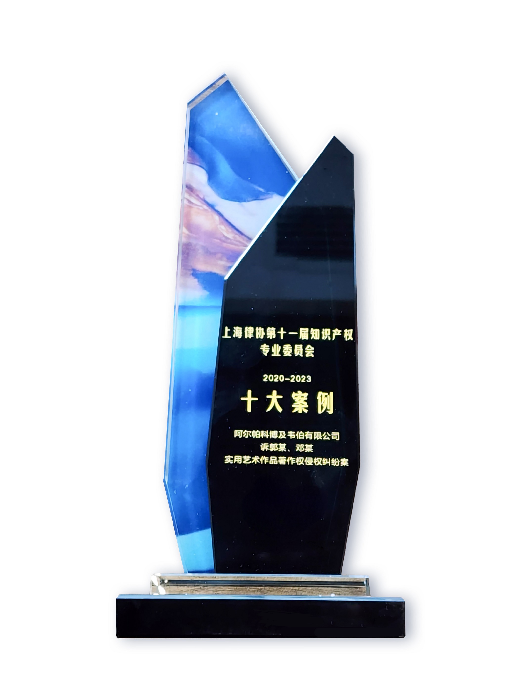 被評為“十大案例”的是李擘律師陳紹娟律師代理的阿爾帕科博及韋伯有限公司訴郭某、鄧某實用藝術作品著作權侵權糾紛案。