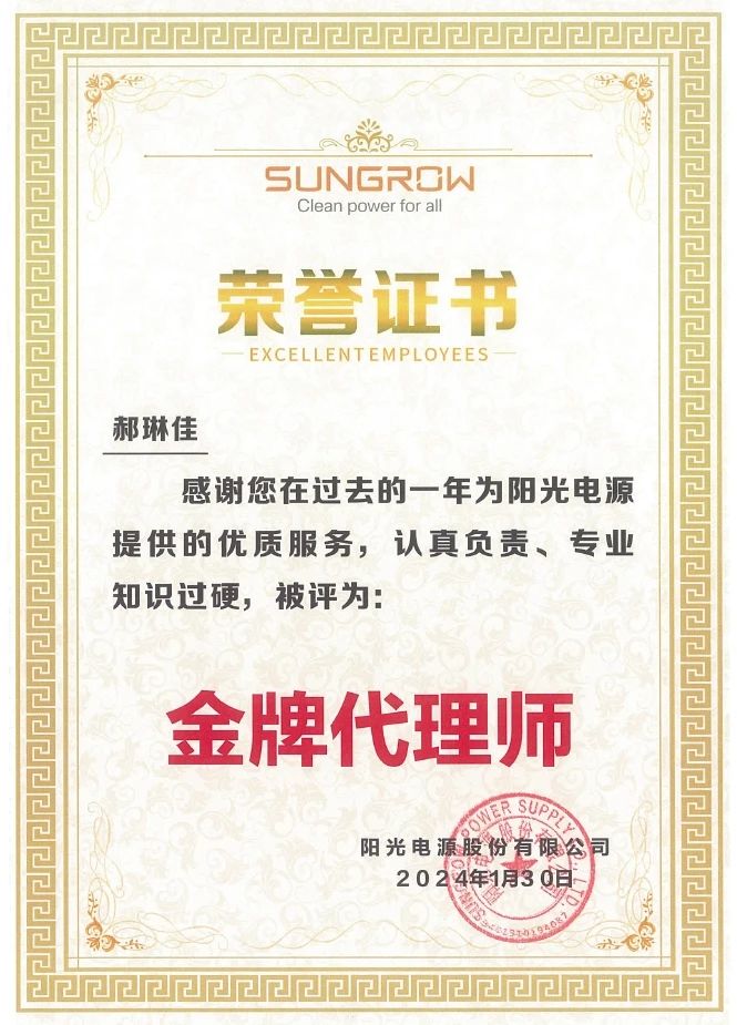 集佳喜獲客戶陽光電源授予“優(yōu)秀合作伙伴”榮譽稱號