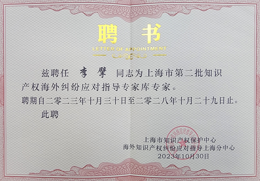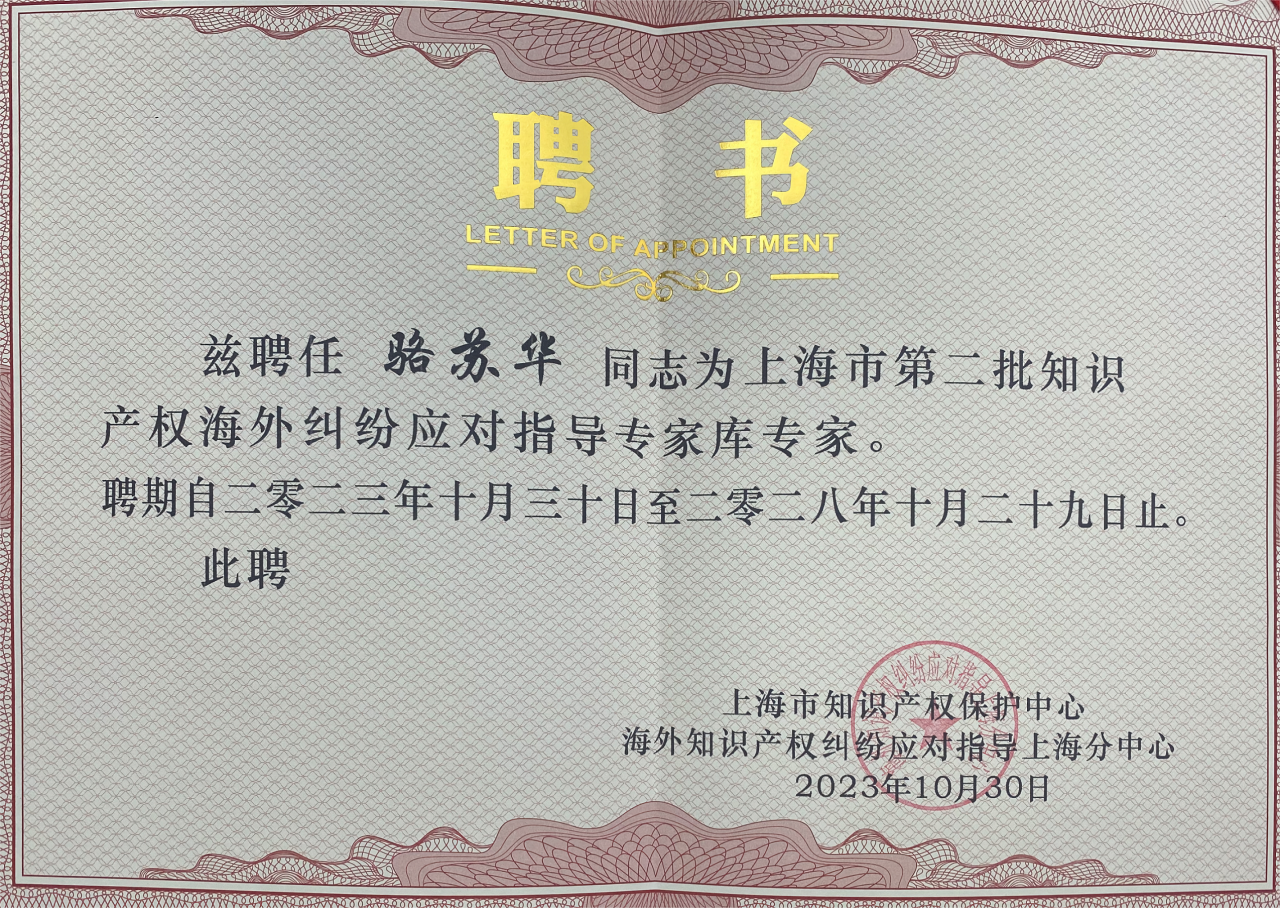 集佳上海分所駱蘇華、李擘獲聘成為上海市第二批知識產權海外糾紛應對指導專家庫專家